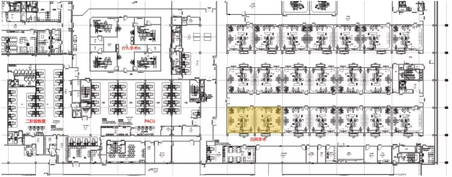 一些医院在设计过程中提出,将介入手术室与手术中心合并布置(如克拉玛依中心医院),或内窥镜中心与手术中心麻醉工作区有直接垂直交通联系(如武汉泰康医院)。考虑到医院麻醉师资源短缺,不失为提高麻醉科及PACU人员和设备利用率的好建议。