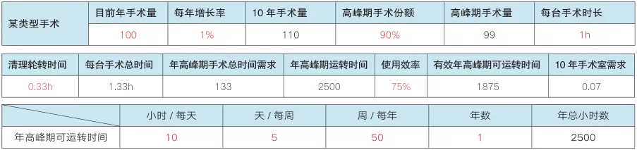 手术部门的规划不仅要满足医院当下的需求,并且要考虑未来的发展,手术部的大小应根据医院的等级、规模、性质等,并视自身的发展需求而定。关于手术室数量的估算,目前比较普遍地采用以下公式 :
