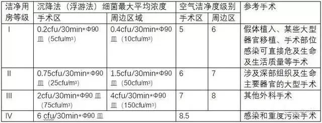 各级洁净手术室和洁净用房送风末级过滤器或装置的最低过滤效率下表的规定: